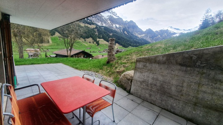 Das Chalet Bäremutz ist ein 3-Familienhaus und befindet sich am wunderschönen Chuenisbärgli, ca. 300 Meter neben dem Sessellift Talstation. Die helle 3-Zimmerwohnung befindet sich im Erdgeschoss. Im Jahr 2020/21 wurde die Wohnung renoviert und besticht mit einer grossen Terrasse, atemberaubender Sicht zur Engstligenalp und zum Bergmassiv Lohner. Eine direkte Zufahrt mit dem Auto zum Chalet ist nicht möglich. Der Parkplatz befindet sich unmittelbar neben dem Restaurant Bodehüttli. Der ca. 200 Meter lange Fussweg führt vom Parkplatz direkt hinauf zum Bäremutz.